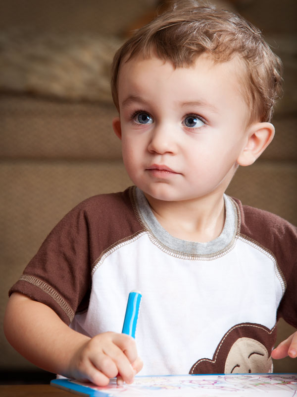 Grandpa brought them back and Becky bathed the little fellow in her tub. Then he grabbed my finger and led me upstairs to the spare bedroom to play with some little things that were scattered on the floor. He got bored with that stuff, opened a drawer and pulled out a new box of crayons. We took those away from him and he didn’t like that one bit. Then he opened the same drawer and pulled out a new box of colored pencils. We took those away from him, too, and he let us know in very clear terms that he wasn’t pleased.