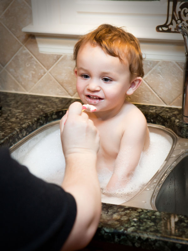 Two hours into his nap he awoke with a dirty diaper. I cleaned him up, fed him a bottle, and took him back over to Granny’s to let her keep him while I worked on pictures. Becky picked up the little fellow after school and took him to Mimi and Grandpa’s for a while. Mimi kept Max and gave him a bath while Grandpa and Becky went out for dinner.