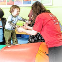 9:49 pm—(Posted by Becky)—Max went walking with Daddy, Mimi, Miss Renae, and Grandpa this morning. Then Max and Grandpa went to Bojangles and I met them there. Max and I had to leave early to get to our Gymboree class. Because of Max’s age he’s been moved up to another class that starts earlier.