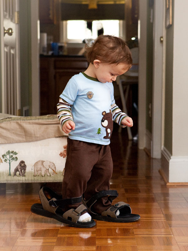 The little fellow slept with us last night, and when Becky got up to go to work this morning, he didn’t even wake up. Then I got up and made an iTunes playlist for this morning’s walk, and he still didn’t wake up. I finally woke him at 7:40 so we could go walk with Grandpa.